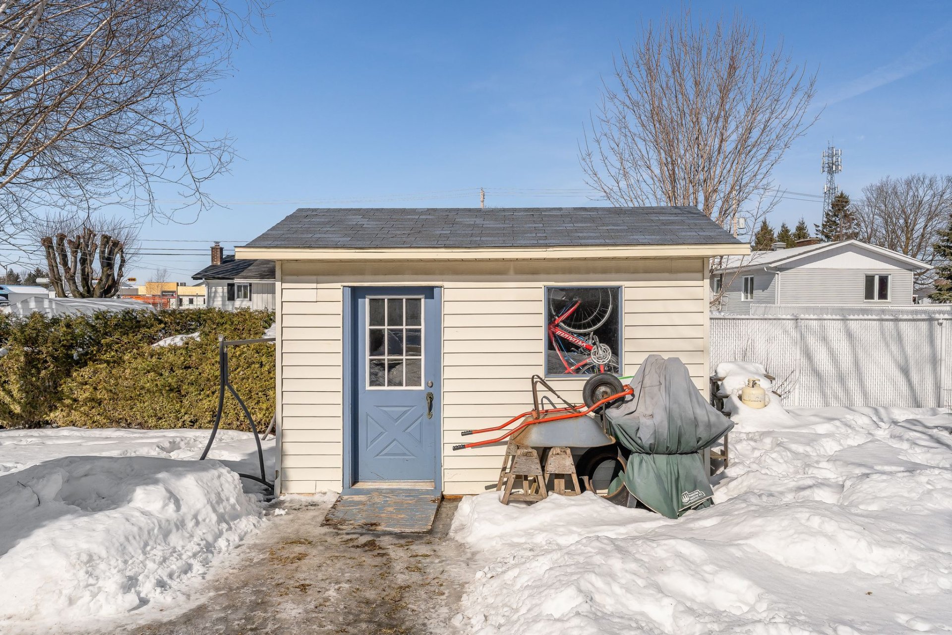 Exclus : Tous les biens et meubles des vendeurs; tous les électroménagers, tous le contenu de la cabane à bois et tous le contenu de la remise.
