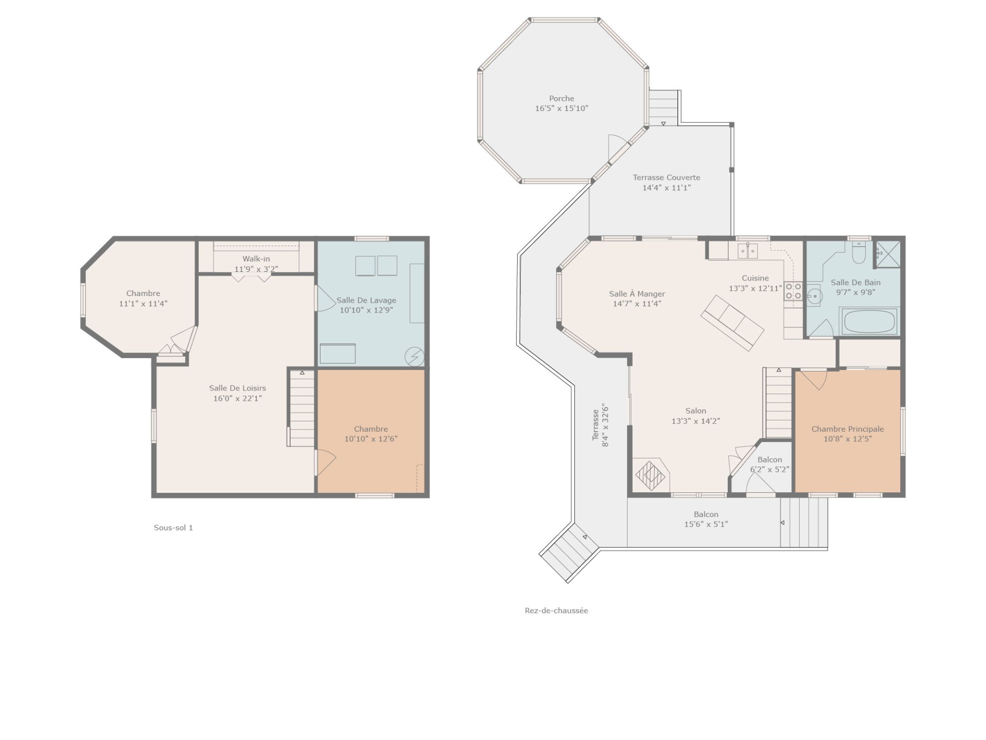 | Chambre à coucher principale | 12.7 x 11.0 P | Rez-de-chaussée | Bois |