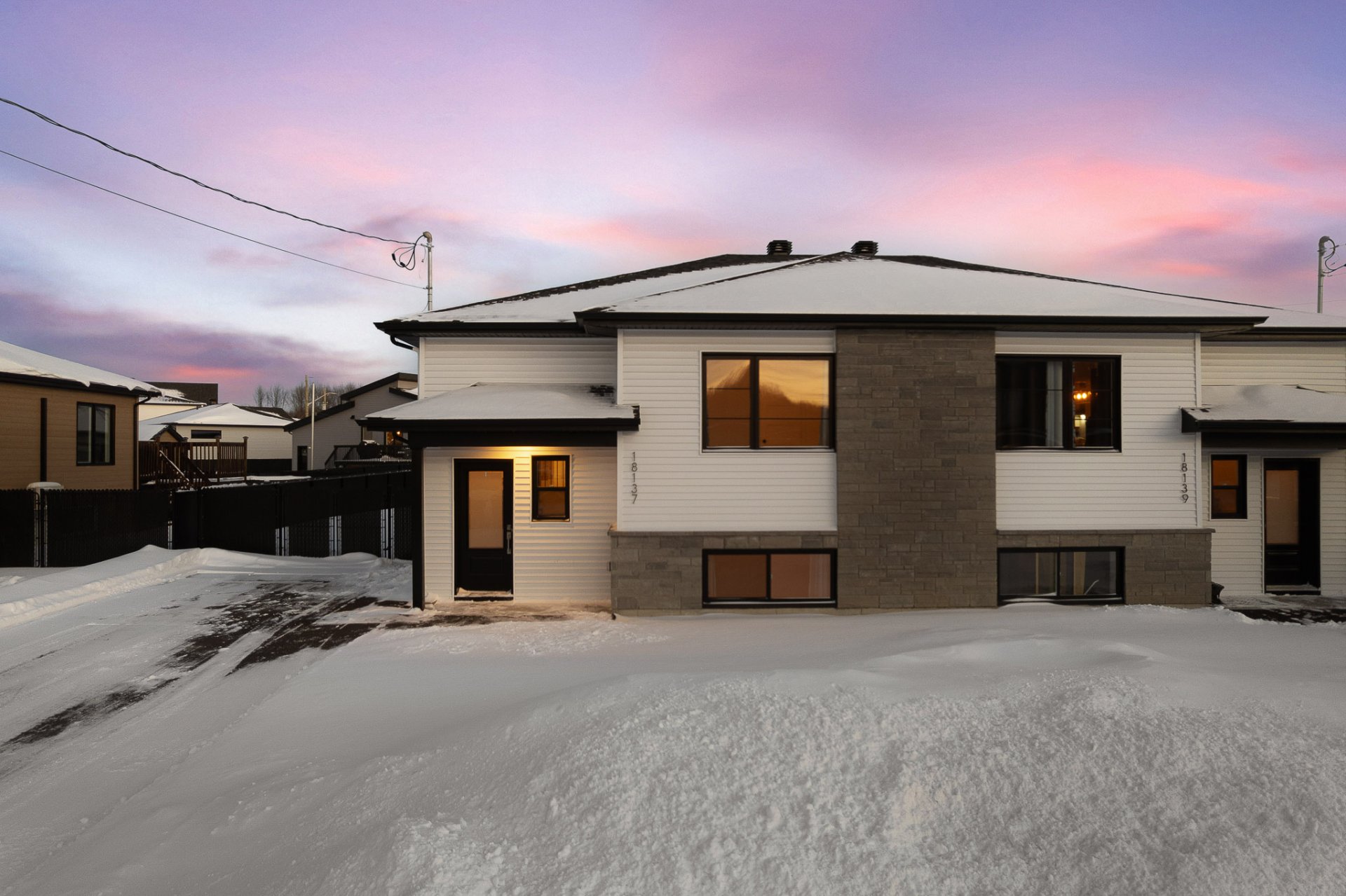 Superbe jumelé 2023 offrant 4 chambres et 2 salles de bain, idéal pour la vie familiale. Son aire de vie ouverte et lumineuse facilitera votre quotidien, tandis que le terrain clôturé assure sécurité et tranquillité pour vos enfants. Située dans un quartier résidentiel récent et recherché, cette propriété offre une belle vie de quartier, à proximité de l'autoroute 55, d'une garderie et des commodités. Venez découvrir l'endroit où votre famille pourra s'épanouir -- une visite vous charmera à coup sûr!