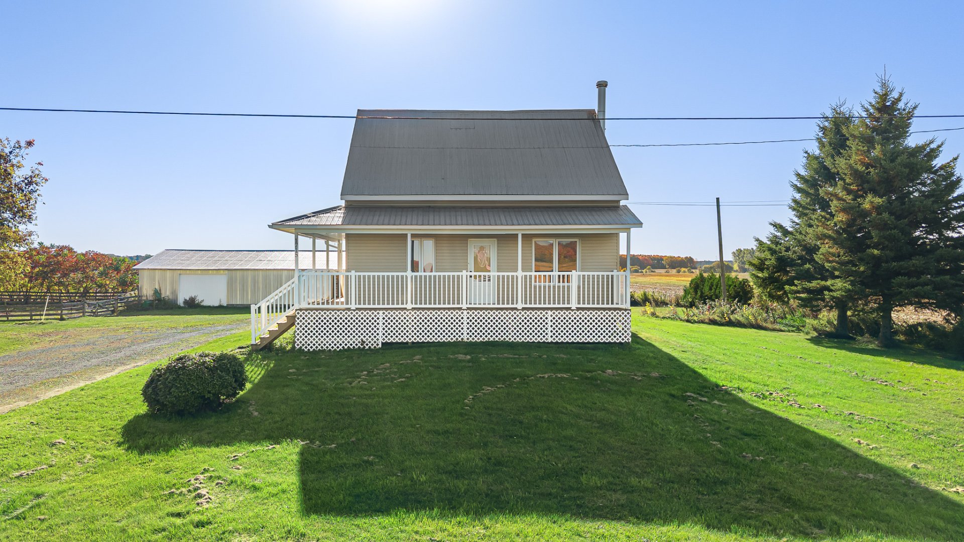 Ici, la campagne vous prend par la main. Rénovée et lumineuse, la propriété offre ce que les photos confirment: une intimité rare, nul voisin à l'arrière -- seulement le calme, l'horizon dégagé et des couchers de soleil qui s'étirent. La vie se prolonge dehors: baignades à la piscine, détente au spa, soirées sous les étoiles. La fermette ouvre de multiples possibilités, tandis que le garage se prête aux grands projets. Plus qu'une adresse, un mode de vie apaisant et vrai -- la campagne, pour vous et vos petits animaux. Coup de coeur assuré! Contactez-nous pour une visite.