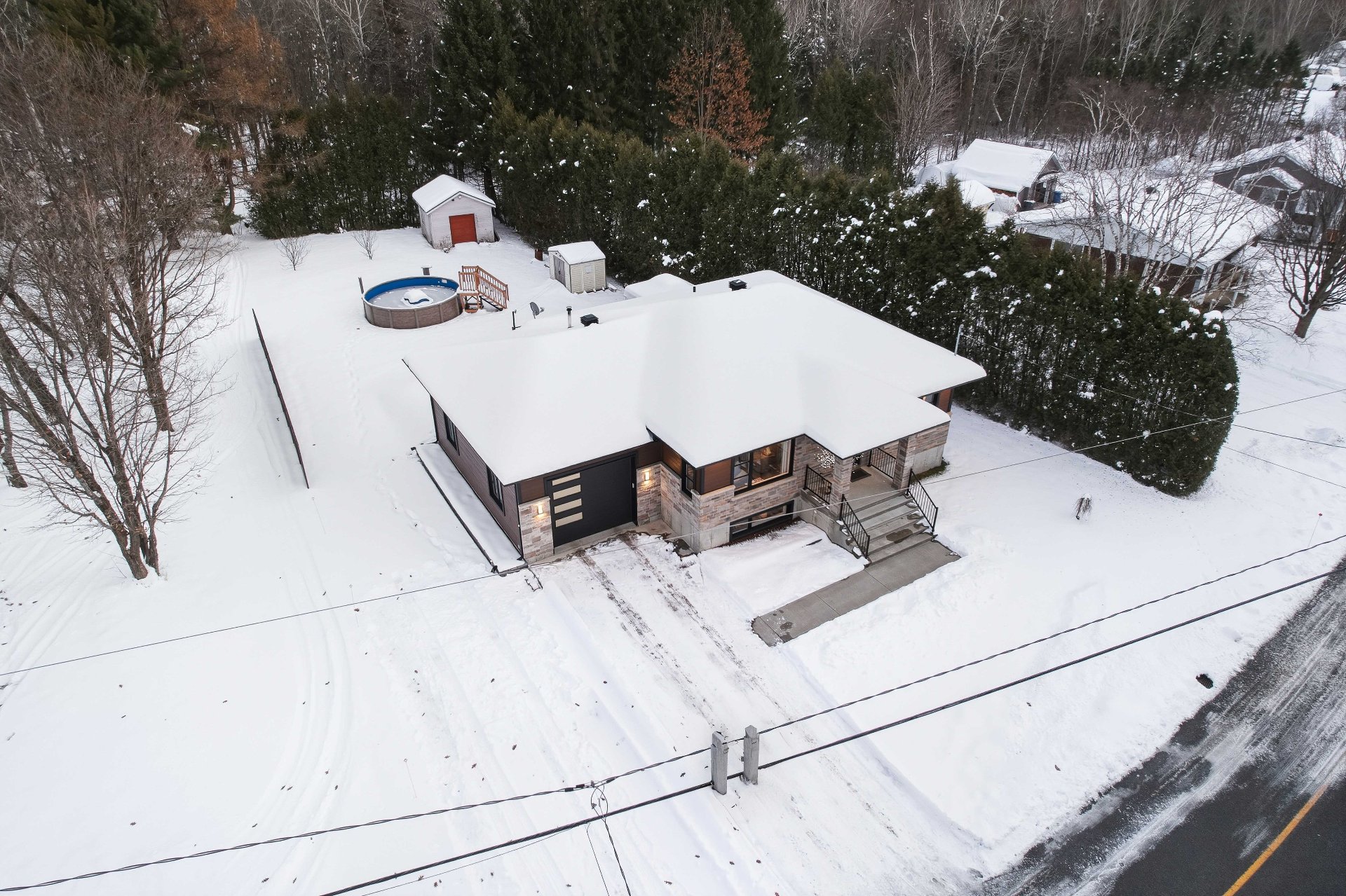 Inclus : Bac à récupération et bac à poubelle; Lave-vaisselle; Réfrigérateur de la cuisine; Cuisinière (poêle); Bancs d'îlot; Tous les luminaires; Tous les revêtements de fenêtres; Foyer du salon; poêle aux granules; Balayeuse centrale et ses accessoires; Piscine hors-terre et ses accessoires; Gazebo; Petit cellier dans la cuisine; Poches de granules dans le garage; Le déneigement de la cour est payée pour l'hiver 2025-2026.